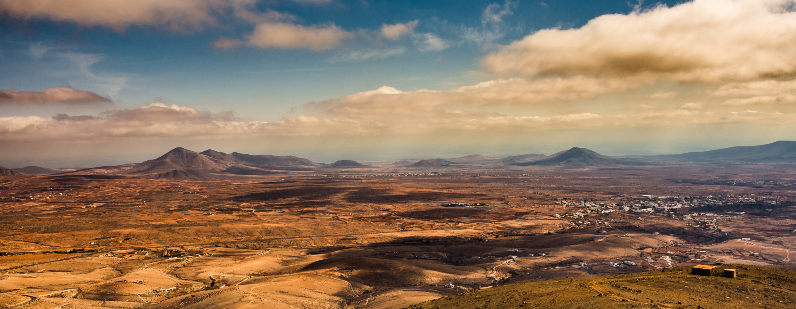 El Mirador de Morro Velosa ofrece impresionantes vistas panorámicas del interior de Fuerteventura, mostrando una faceta de la isla muy alejada de sus zonas costeras más turísticas. Situado dentro de una Reserva de la Biosfera de la UNESCO, el mirador domina un amplio paisaje de colinas redondeadas, profundos barrancos y pequeños pueblos de interior, marcado por tonos ocres y una fuerte sensación de amplitud y calma.